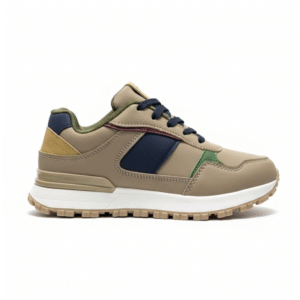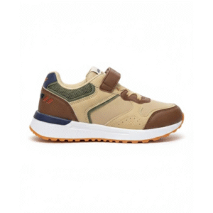 Une chaussure polyvalente, durable et élégante, parfaite pour les enfants actifs. Elle est dotée d'une fermeture Velcro facile, d'une tige résistante dans des tons terreux (marron, beige, kaki) et d'une semelle en caoutchouc orange à haute traction pour une adhérence fiable sur toutes les surfaces. Le confort rencontre le style.
